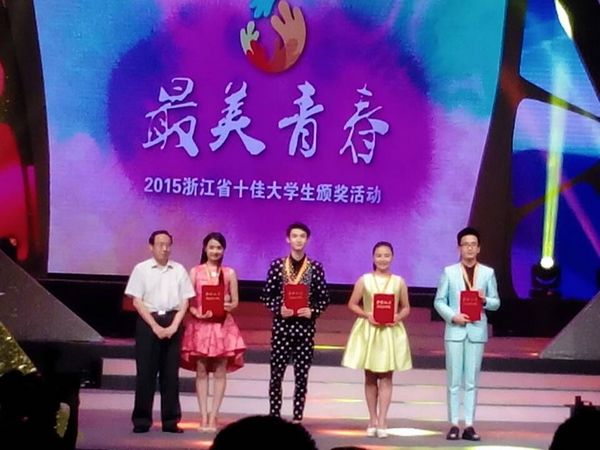 6月8日晚,“最美青春”浙江省第四届“十佳大学生”颁奖典礼在杭州电子科技大学学生活动中心剧院举行。省委常委、宣传部长葛慧君,省委教育工委书记、省教育厅厅长刘希平,省委宣传部常务副部长胡坚等出席活动并为获奖大学生颁奖。我院舞蹈系五年一贯制学生陈浩凯作为浙江省第四届“十佳大学生”之一,在大会上与其他获奖者一起受到表彰。我院党委副书记黄杭娟等出席颁奖活动。