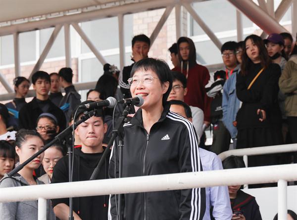 庄严的国歌是运动会的号角,全体师生行注目礼。院长黄杭娟致开幕词。她向此次参与运动会的所有工作人员表示衷心感谢和诚挚问候,预祝运动会圆满成功。她以在第18届亚运会闭幕演出上惊艳亮相的浙艺校友为例,鼓励全体运动员用最佳状态投入比赛,赛出风格,赛出水平,取得运动会成绩和精神文明双丰收。她指出,体育运动是一项体现人的身体素质、道德修养和意志品质等综合能力的活动,相信我们浙艺的学子健儿,不仅能在舞台上奏响动人的乐章,跳出曼妙的舞姿,同样也能在运动场上展现矫健的身姿,在体育锻炼中享受乐趣,增强体质,成为德智体美劳全面发展的社会主义建设者和接班人。