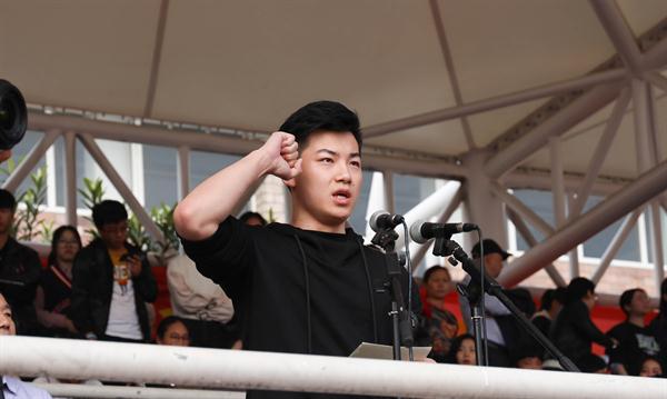 2017级戏剧影视表演班学生俞俊、马佳红老师分别代表运动员和裁判员宣誓。校党委书记朱海闵宣布浙艺第15届田径运动会正式开始。