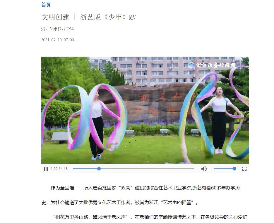 新蓝网:文明创建 | 浙艺版《少年》MV
