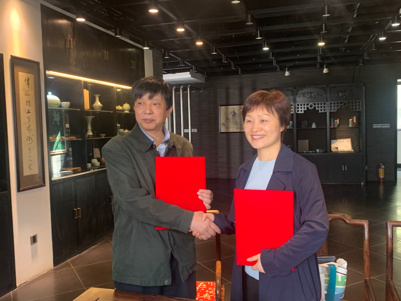 “子芦瓷坊”由中国陶瓷艺术大师卢伟孙于1997年立窑烧制。子芦瓷坊秉承宋瓷瓷韵,致力于传统龙泉青瓷的发掘和制作,同时赋予产品更多的审美情趣,格调高雅,制作精良。卢伟孙向金银琴一行介绍了作品的艺术创作理念、制作技艺过程。金银琴介绍了学院专业的发展情况,希望能够与卢伟孙老师开展深度合作,在子芦瓷坊建立产教融合教学实践基地,期待卢伟孙能指导民族传统技艺专业建设和教学,共同为非遗技艺传承创新育人育才。双方经过交流,达成了一致目标,签署了合作协议。