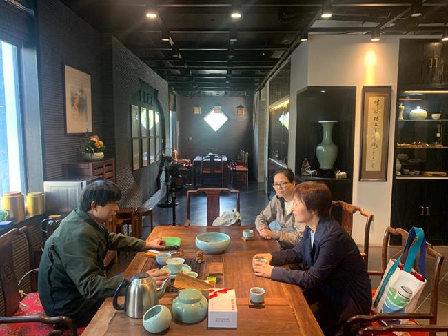 10月19日-20日,手工艺学院党总支书记、副院长金银琴一行赴龙泉市开展青瓷烧制技艺考察调研。金银琴一行先后来到龙泉市子芦瓷坊、青子瓷艺,与中国工艺美术大师、浙江省非物质文化遗产代表性传承人卢伟孙,浙江省陶瓷艺术大师、高级工艺美术师陈少青开展专业合作交流。