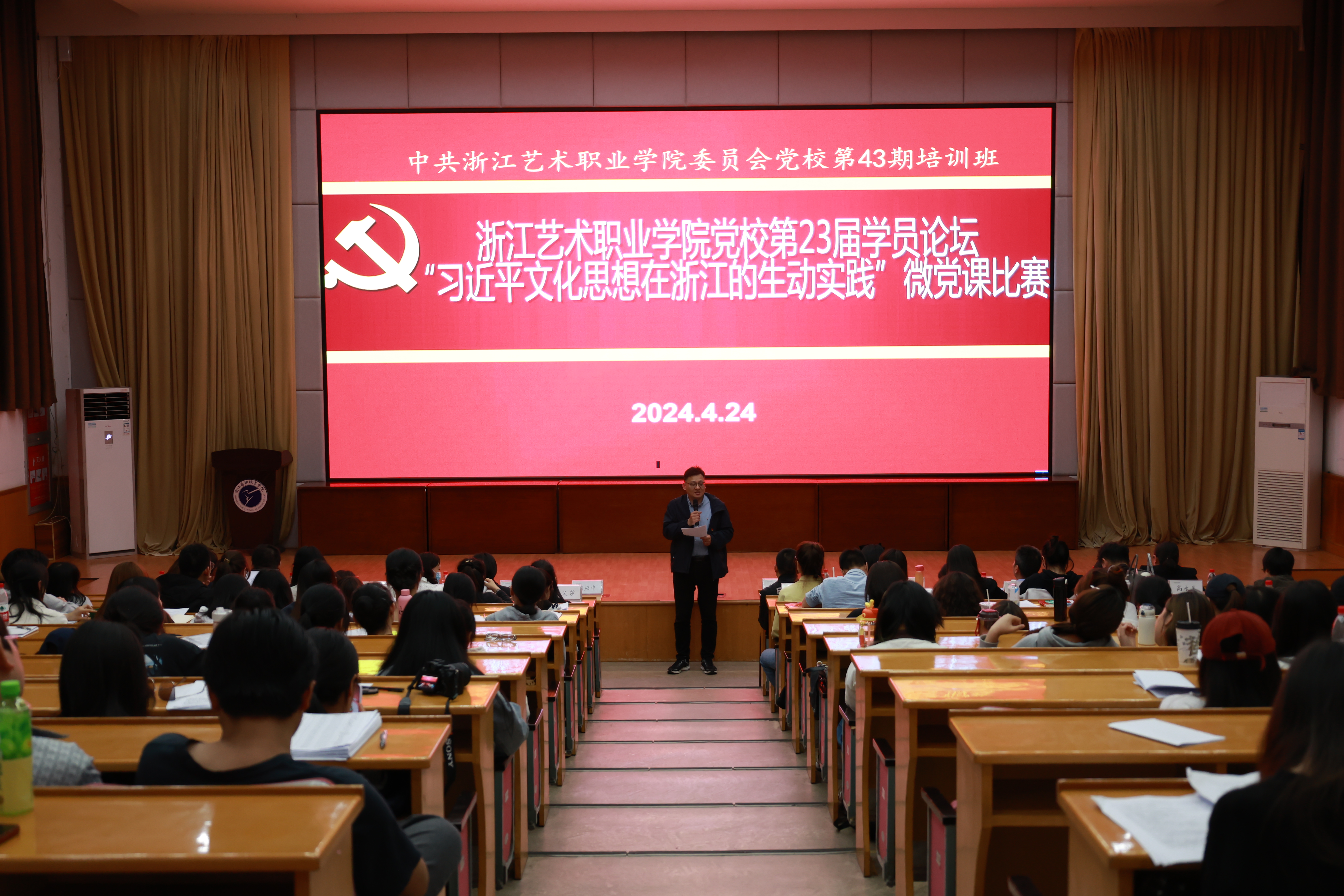 比赛中,12名选手紧紧围绕“习近平文化思想在浙江的生动实践”这一主题,以小人物承载大情怀、小话题阐释大主题、小故事阐述大道理的方式,结合PPT、图文、短视频等形式,用慷慨激昂的宣讲、娓娓道来的深情,展现了新一代浙艺青年牢记嘱托、感恩奋进、践行发展的使命担当,赢得在场观众的阵阵掌声。周应中从比赛很精彩、很感动、很期待三个方面进行点评,他高度评价了此次微型党课比赛主题聚焦又丰富、思路既清晰又活泼、视角既年轻专业,感动于参赛团队与保障团队所付出的辛苦努力,也从进一步创新导入策略、清晰叙事线索提出了期许,鼓励党校学员继续讲好浙江优秀传统文化创造性转化、创新性发展的故事,讲好古往今来浙江文化与世界文明交流互鉴、共同繁荣的故事,真正“习近平文化思想在浙江的生动实践”真正内化于心,外化于行。